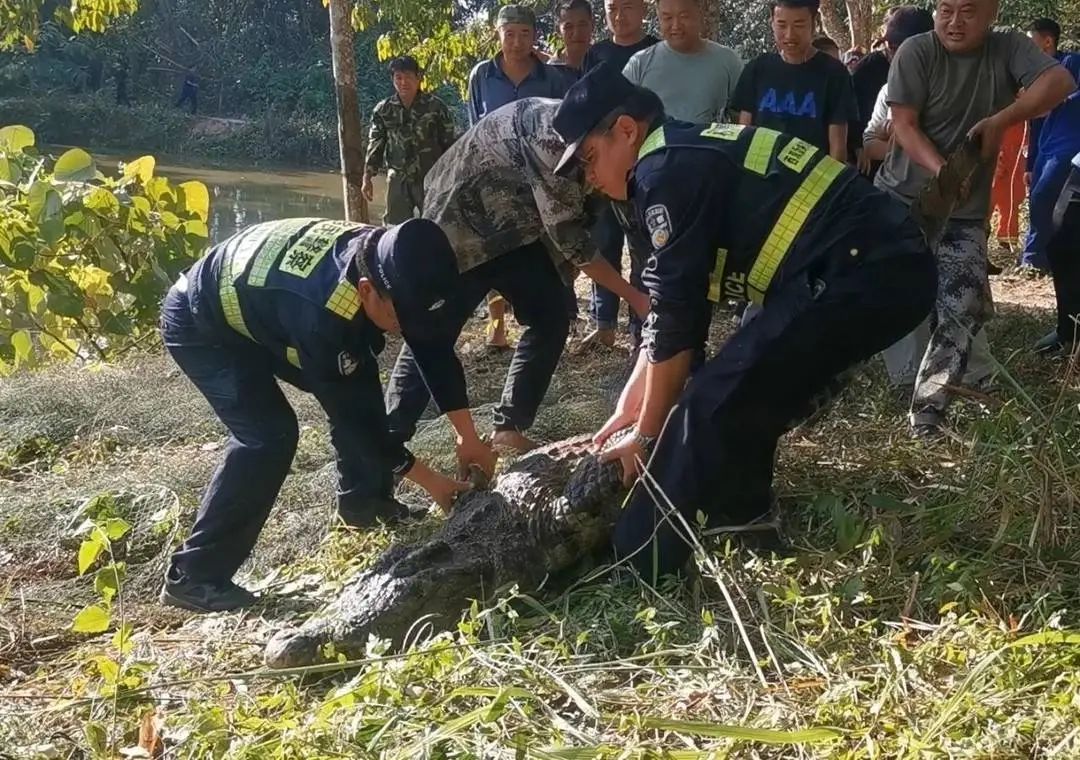近日,云南西双版纳勐腊县一条长约3米、重达310斤的成年鳄鱼咬破铁笼脱逃,后经当地多部门地毯式搜查,最终在一鱼塘中找到出逃的鳄鱼。为预防酿成不消要的伤害,特警队员开枪将其击毙。