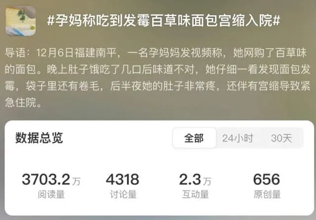 公安网安部门使命中发现,2024年12月6日-8日,有网民发布贴文称“某品牌面包发霉,妊妇吃后入院调理,时候客服魄力暗昧、不负连累”,并以“某品牌吐司面包发霉”为题发布了两则与公司疏通的发达情况。帖子发酵速率极快,公安网安部门遂即进行拜谒。