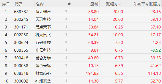 今天AI诈欺连接爆发,海天瑞声、天玑科技、科大讯飞等多股涨停,万兴科技、昆仑万维(维权)、蓝色光标等多股大涨。