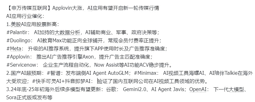 吐槽一下,易中天等NV链终于反弹了,来岁估值不到20倍,比拟下来,A股热炒的那些科技股确凿让东说念主看不上眼。科技内部最值得看好的照旧AI,之前主淌若算力硬件为主,后续AI诈欺也不错看了,况兼跟着诈欺爆发,推理端会爆量,推理端不需要那么高性能的GPU,这亦然国产算力爆发的要津原因。