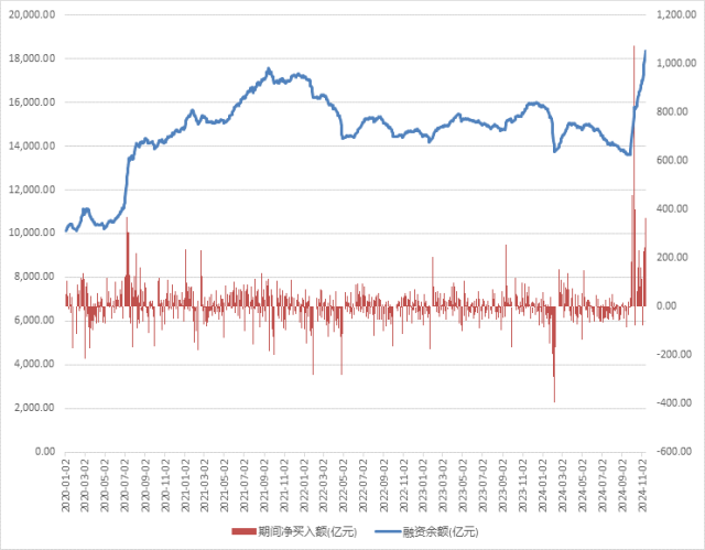 节后的增量资金主淌若融资在加杠杆,如下图所示,融资余额快速攀升,节后到现时融资买了4000亿,仅11月到现时就买了1361亿。截止11月12日,两市融资余额为18352.24亿,创下自2020年以来的新高。