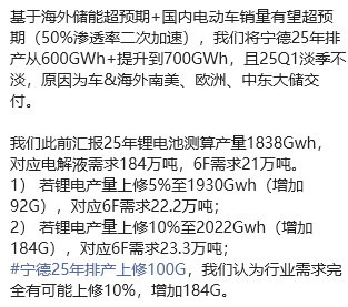 此外,卖方机构调高了宁德时期来岁的排产,以下是机构的不雅点,贴上来仅供参考。