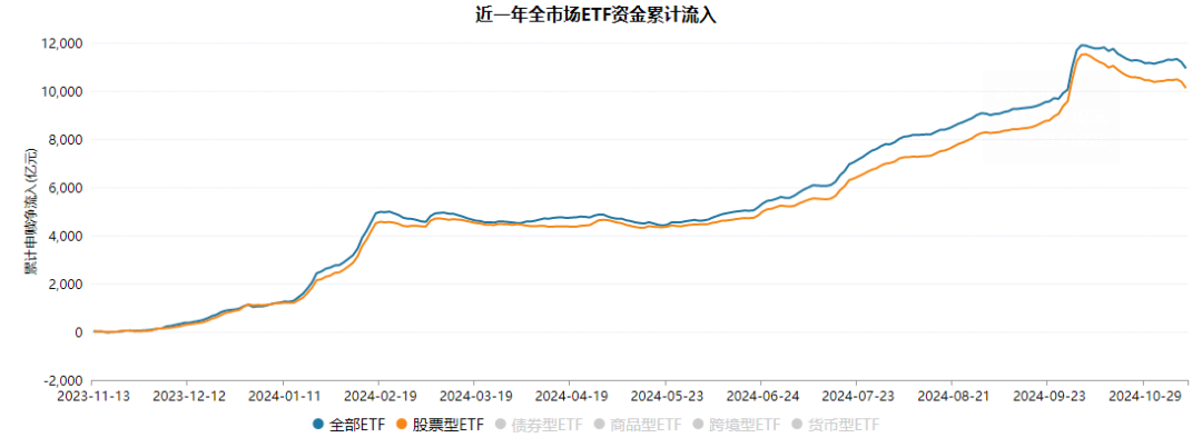以国庆节为分隔线,国庆节前A股处于熊市之中,增量资金主要来自于以ETF为代表的被迫资金,岁首到国庆节净流入超1万亿,这1万亿又主淌若国度队孝顺的。